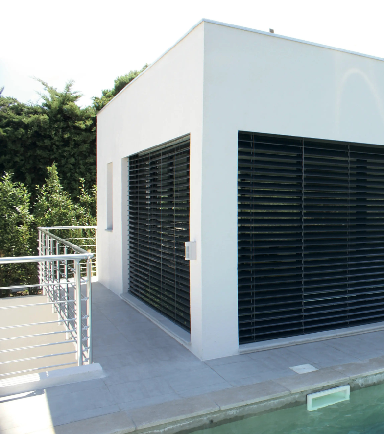 Gérez efficacement lumière et chaleur dans vos pièces grâce au brise-soleil orientable. Ce brise-soleil orientable extérieur filtre les rayons du soleil, réduit l’effet de serre et valorise vos façades, tout en assurant un confort intérieur optimal et agréable à vivre toute l’année.